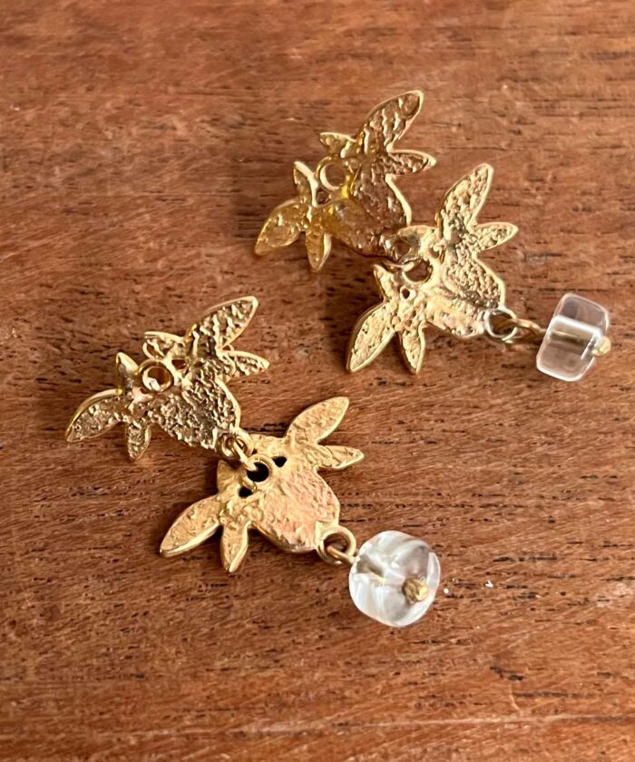 9ct gold double orchids with rock crystal earrings (23)