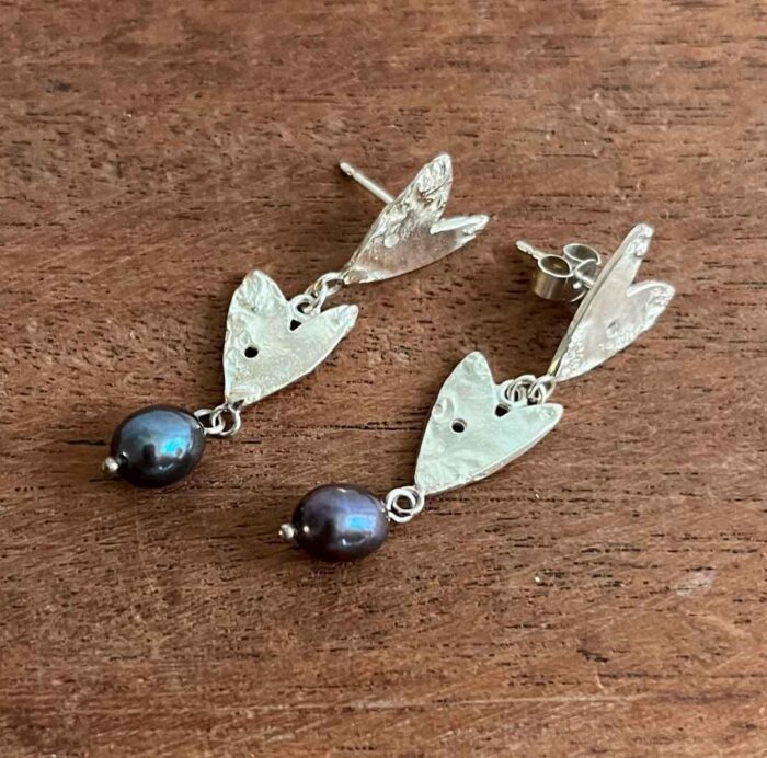 Double heart with black pearl earring (41)