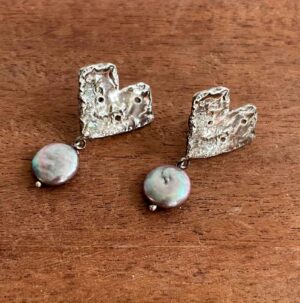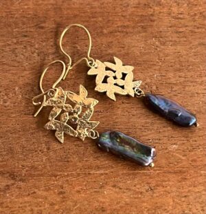 Double heart with black pearl earring (41)