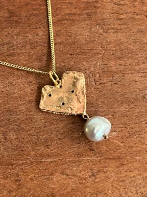 9ct gold heart pendant with silvery pearl and 44cm chain (13)