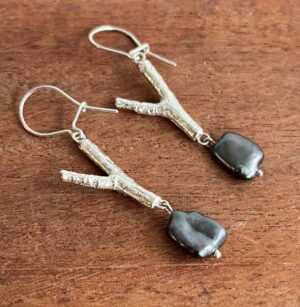Silver twig with purple pearl earrings (34)