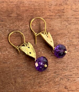 18ct gold heart with amethyst earrings (7)