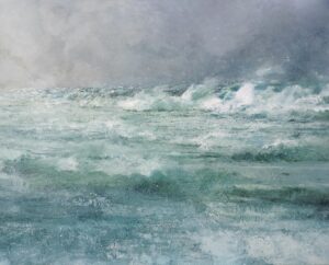 She taps the elemental forces of the rugged Cornish coastline for inspiration, painting untamed seascapes and weathered coastal views, focusing on the strength of light and ‘that point of contact between the sky and the horizon’. Literature often plays its part. Patrick O’Brian’s HMS Surprise has been the influence for many of this exhibition’s paintings. Watson strives for the painting to be more than just a view, and aims to immerse the viewer within the vastness of the subject matter and the visceral presence of the painting itself.