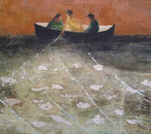 From time to time I find particular subjects keep coming back to me and I need to do something about them. Boats, figures by the edge of the sea or standing in an open landscape often recur. The proverb carries some weight for me and offers I hope a sympathetic title for the show.